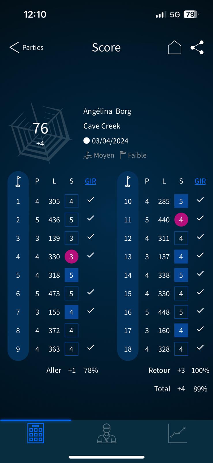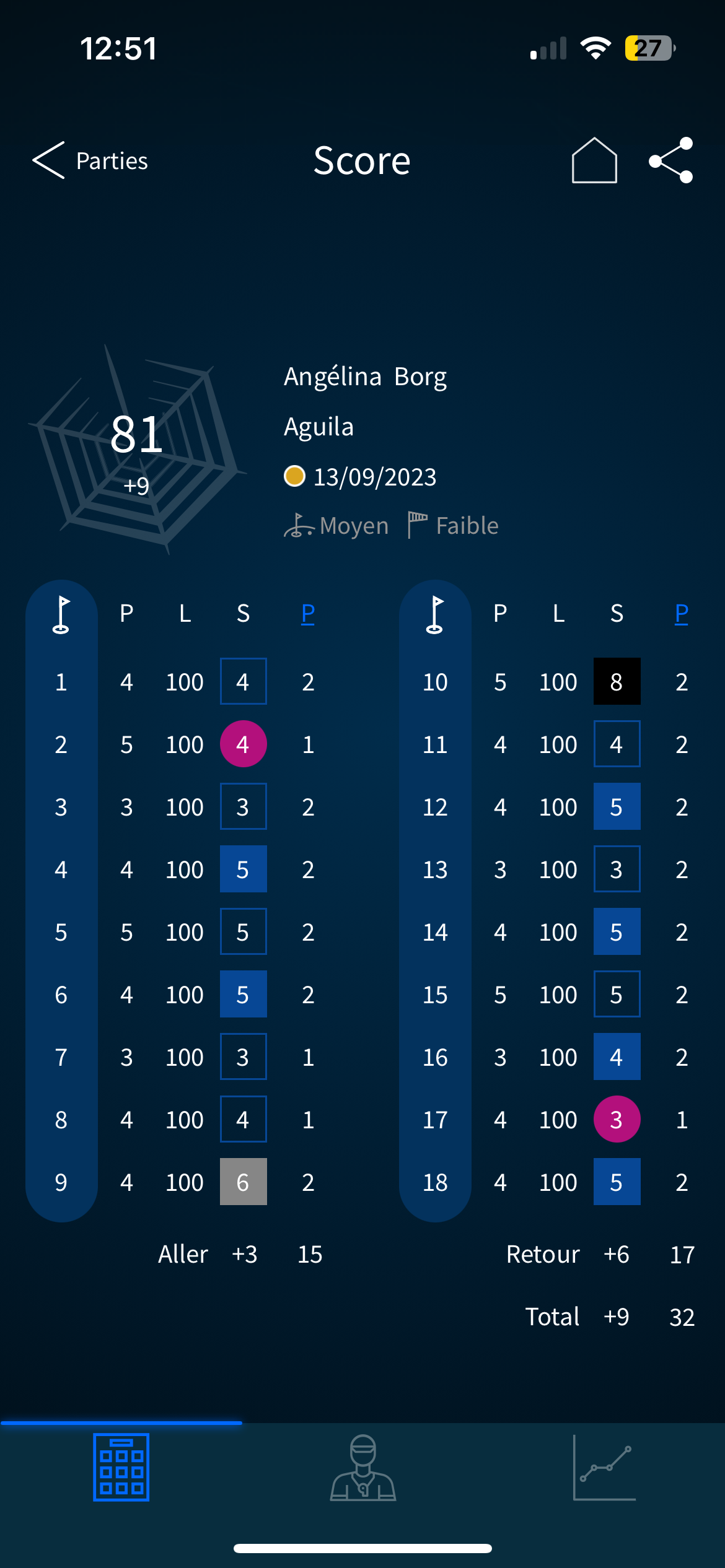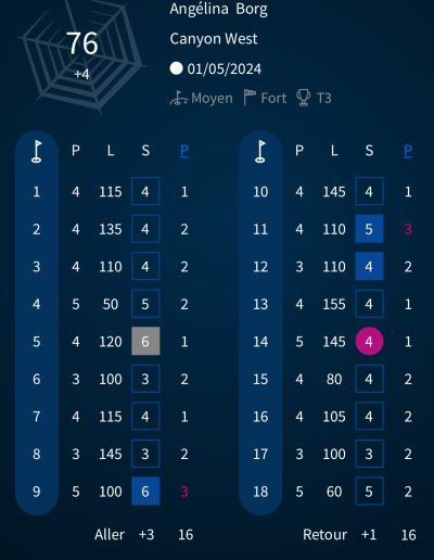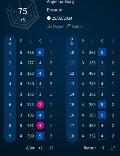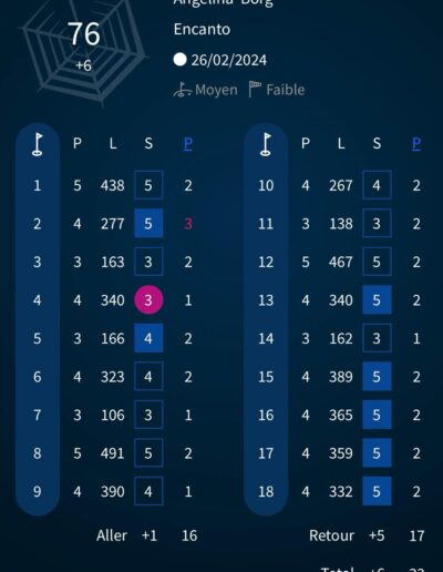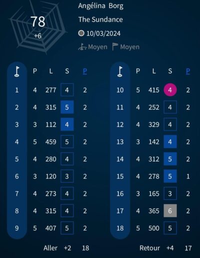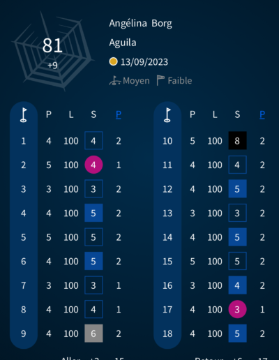- First negative score at Meribel (France): -1 (70) in July and 0 (71) in August.